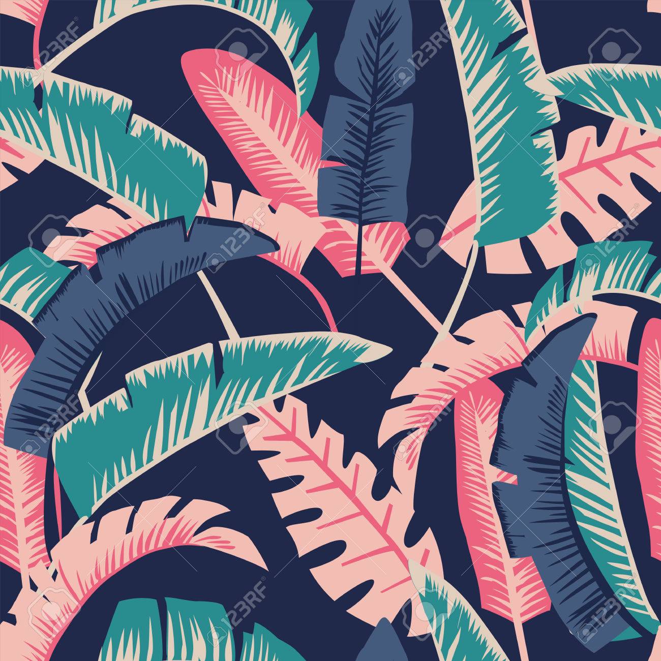Peint Dans Des Feuilles De Banane De Style Dessin Anime Seamless